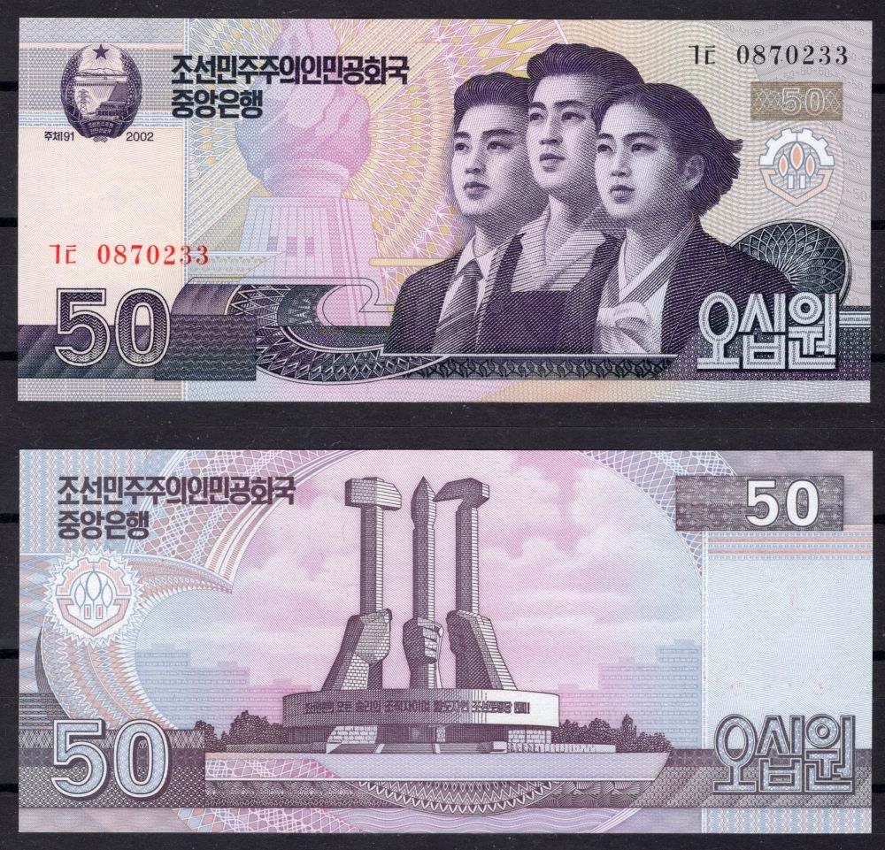North Korea 50 Won 2002 UNC Uncirculated Free Shipping. |