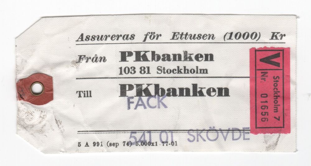 PK-banken ASS/VÄRDE Adresslap till SKÖVDE OVANLIGT |