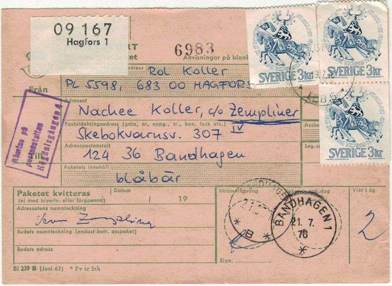 Hagfors LBB 5 (Bergsäng) NSt 59b på paketavi 19.7.76 |