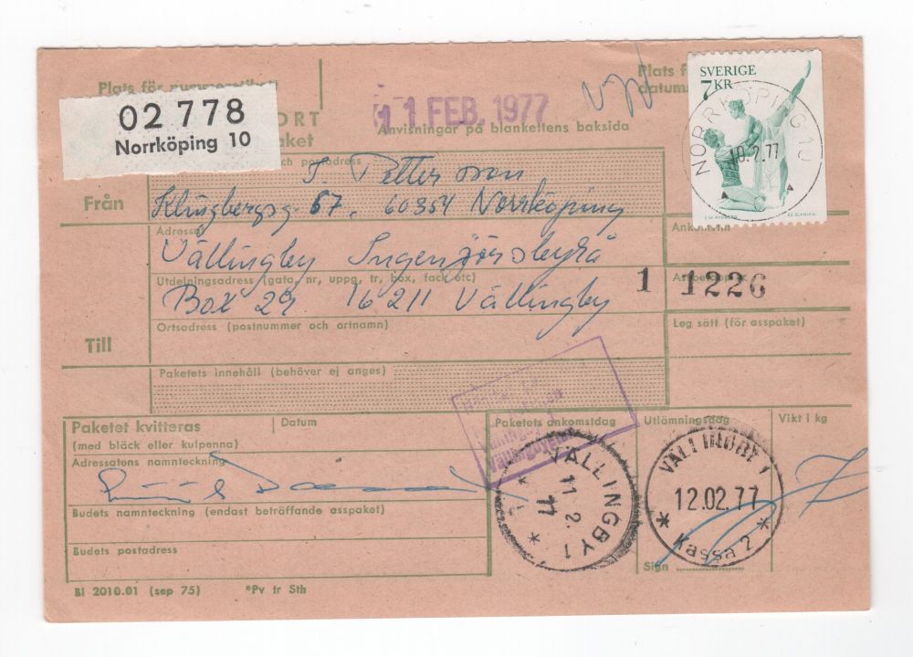 0942 Norrköping 10 1977-02-10 Adresskort paket E-län |
