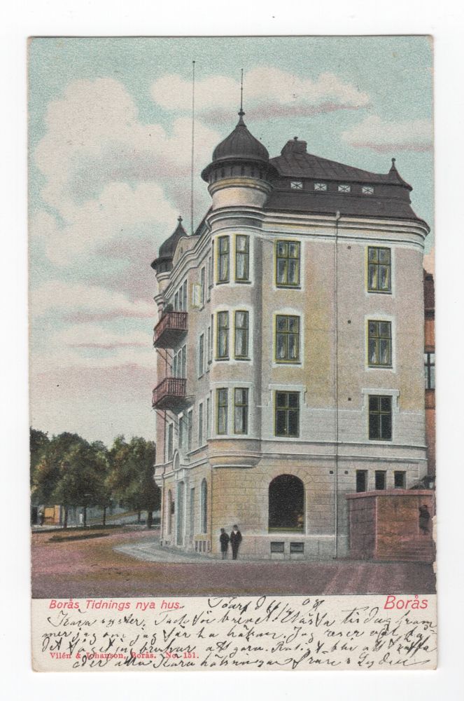BORÅS Tidningens nya hus. Postgånget F52 Toarp 1908-04-11 P-län |