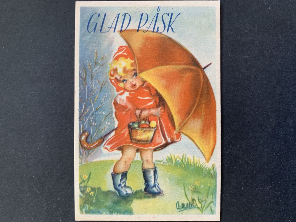 Påskkort med flicka och paraply - ANNMARI |