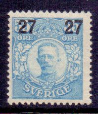F102 Gustaf V i med, påtryck 27 på 55 öre ** |