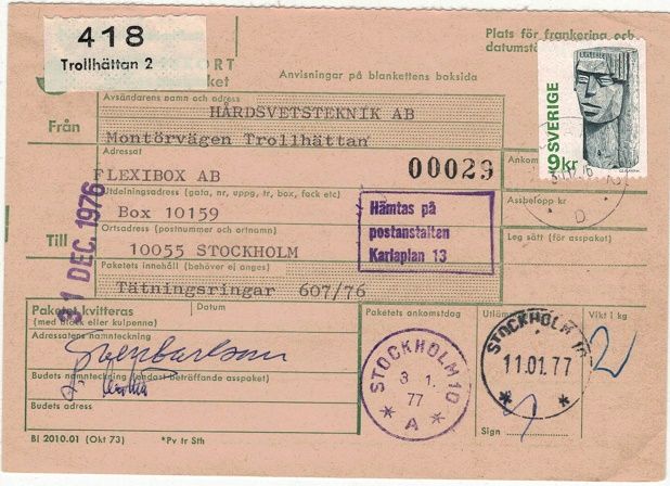 Trollhättan 2 NSt 60 D på paketavi 30.12.76 SVÅR |