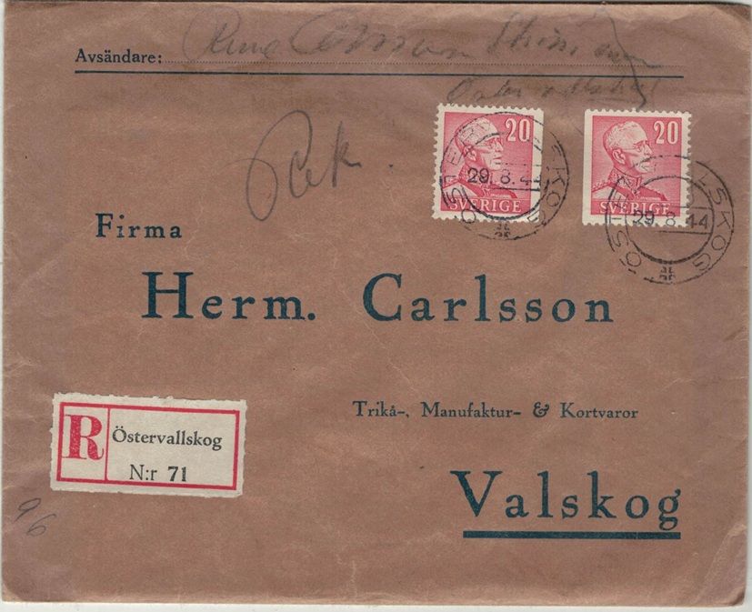Östervallskog NSt 58p på REK-brev 29.8.44 nära PRAKT |