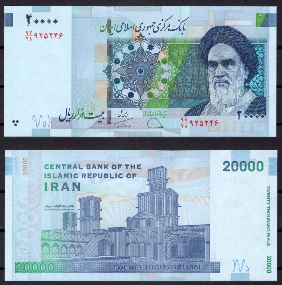 Iransk / Persian 20.000 Rials UNC Uncirculated Free Shipping. |