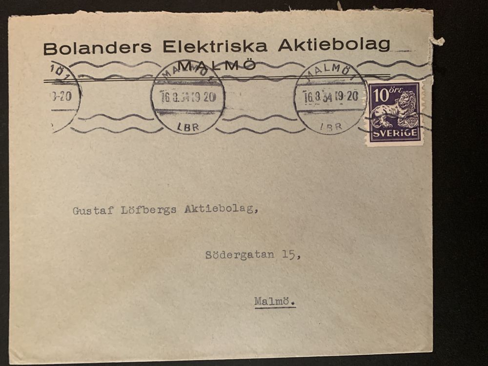 BOLANDERS ELEKTRISKA AB - MALMÖ 16/8-1934 |