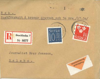 F305 o F395 Stockholm 7 A-län rek, postförskott |