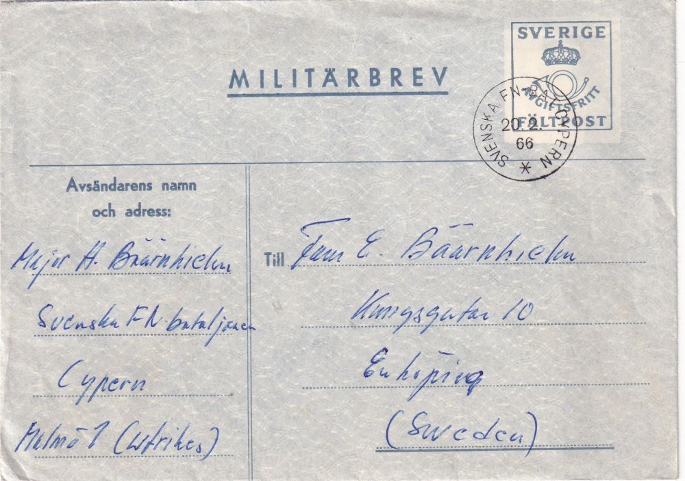 Militärbrev Svenska FN BAT Cypern innehåll till Enköping |