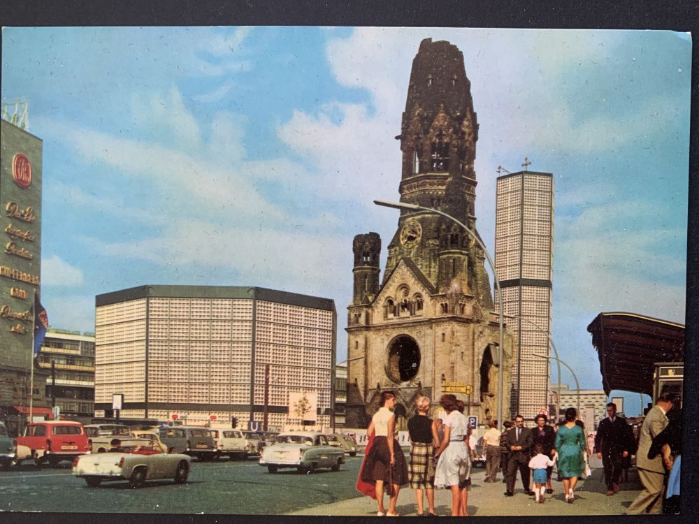 Berlin - Kaiser Wilhelms minneskyrka, gamla bilar |