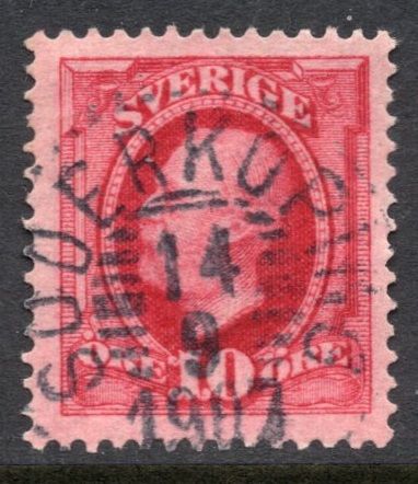 F54 Oscar 10 öre stmp Söderköping den 14.9.1907 |