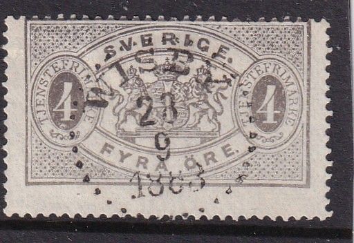 4 öre stort tjänstemärke Wisby 25/9 1883 |