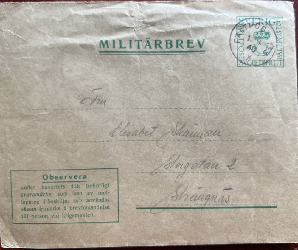 Fältpoststämplat militärbrev 1.9 -40 |