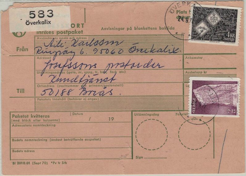 Överkalix NSt 60 F på paketavi 24.9.77 SVÅR |