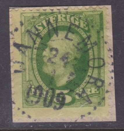F52 5 öre Oscar II, Dannemora 24.1 1909 på klopp |
