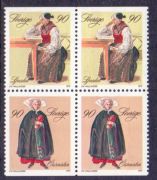 F1105-06 Folkdräkter, 90 öre, 4-block **