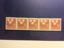 139** 5-strip med plåskarvstecken Lilla Riksvapnet