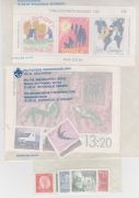 Helgfrimärken i ark inlagda i plastfickor i sv.pärm. Bältesspännarsmärken