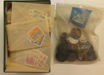 Fyndlåda , album, stpl.märken mm.+ nominal ca1500:-