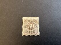 Ringtyp T 13 facit 35 lyxstämplat BJÖRKVIK 13712 1881, fläckar på märket