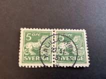 Stående lejon facit 143 C i praktstämplat 4+4 sidigt par MÅLILLA KYRKBY 27.11.31