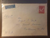 F 283 Gustaf V profil hö 40 öre på Flygpostbrev till England