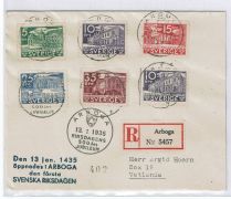 F 240-45 på vackert rekbrev minnespoststpl ARBOGA 1935-05-27