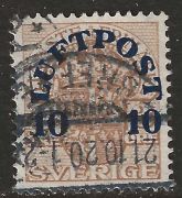 F136 10 öre på 3 öre Flygpostfrimärke stämplad