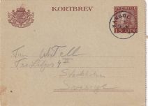 F177C 15 öre profil vänster, Hörneå 17.8.35 stämplad