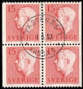 413BB 4-block Västerås 1. GVI typ II. 15 öre röd. Fyrblock i LYX. U-län