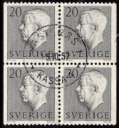 414BB 4-block Västerås 1. GVI typ II. 20 öre grå. Fyrblock i LYX. U-län