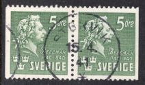 F52 och 54 5 och 10 öre Oscar II. Bergby 2.9 1892 på klipp