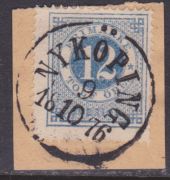 F21 12 öre T14 Nyköping 9.10 1876 vacker-prakt på klipp
