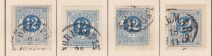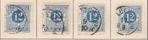 F21 12 öre T 14, 4 stämplade ex bl.a Luleå 17-9 1876