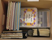 Fyndlåda med många insticksalb, pergamynkuvert,mm