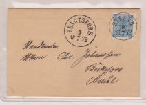 Brev 12 öre vapen stpl. Strand 8-7-1872/Bengtsfors 9-7-1872