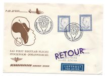 FLYG Första reg. flygn Stockholm-Johannesburg 1953-01-08 Ank.stpl 1953-01-11 F144 (2 st)