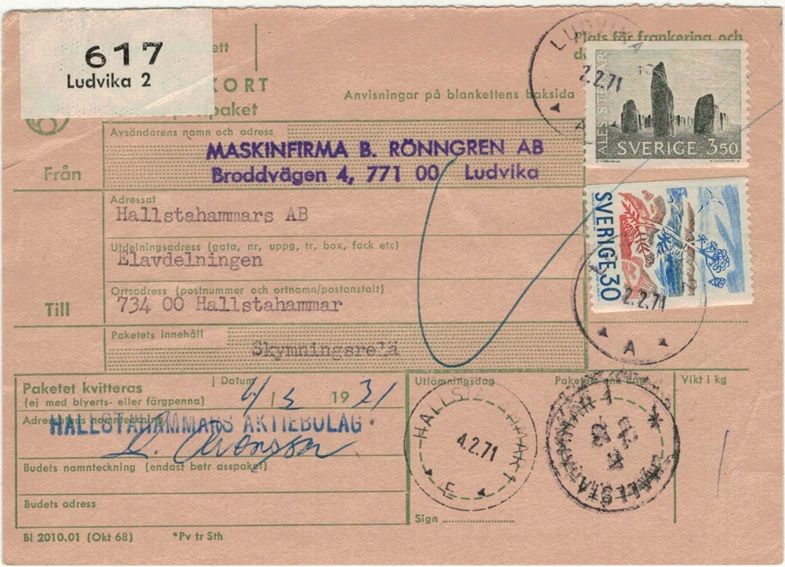 Ludvika 2 NSt 60 A på paketavi 2.2.71 |