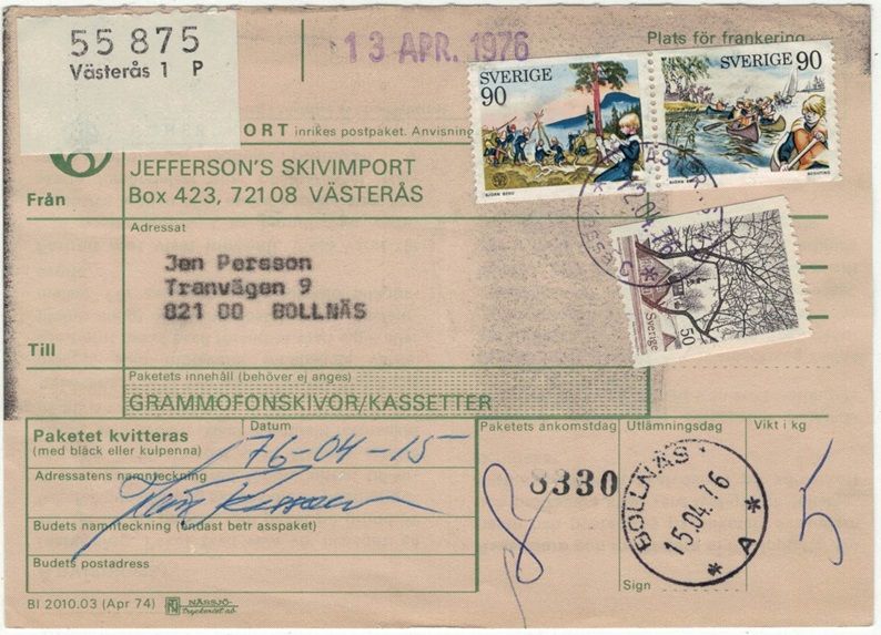Västerås 1 P NSt 61ckassaC på paketavi 12.04.76 |