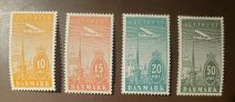 Danmark Luftpost F 262-265 Ostämplade, gummering med spår av fastsättare
