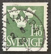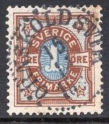 Sverige, F10 stämplat, litet märke efter fastsättare