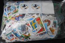 Påse med c:a 310 g frimärken från USA & brevmärken från hela världen