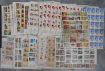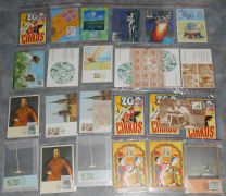 Brev- & helgmärken mm mest Sverige (många bensinskadade(?) kartor julmärken)