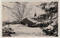 Tällberg stuga på vintern (Förlag: Sörlin & co, Rättvik) stpl Vasaloppet 1950