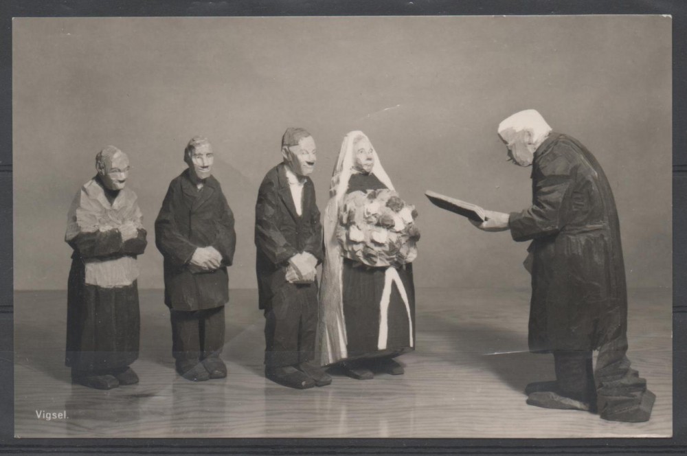 Vykort med Döderhultarns vigsel.Tryckt av Hembygdsföreningen Oskarshamn.