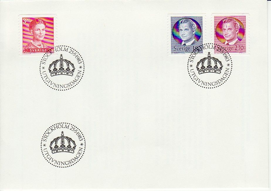 FDC 1983-05-25 Carl XVI Gustaf & Drottning Silvia, Facit nr 1256-1258Samlarvärde 15 kr enligt Facit Norden 2022