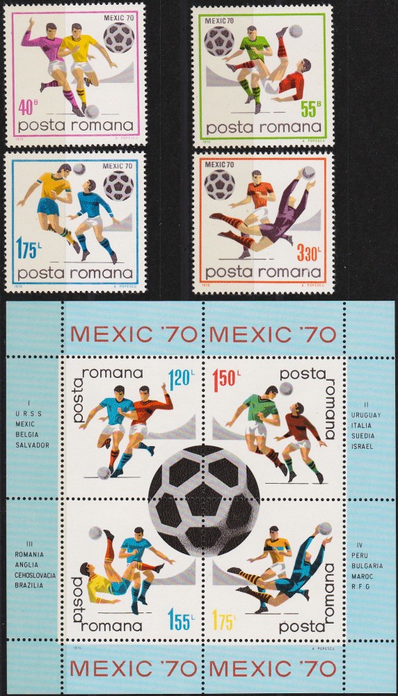 RO 1970 Mi #2842-2845 & BL75 MNH World Cup Mexico |