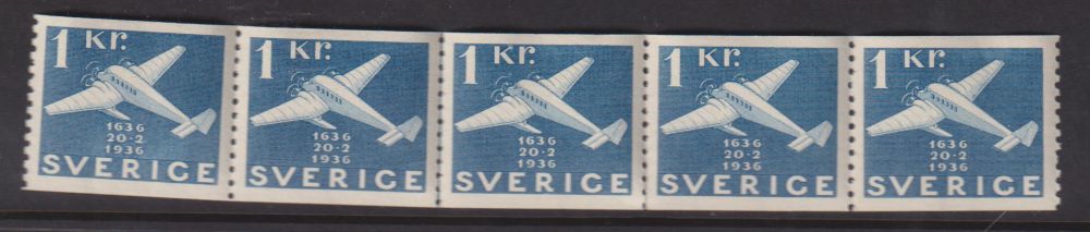 257** 5-stripp med plåtskarv Postverket 300 år |