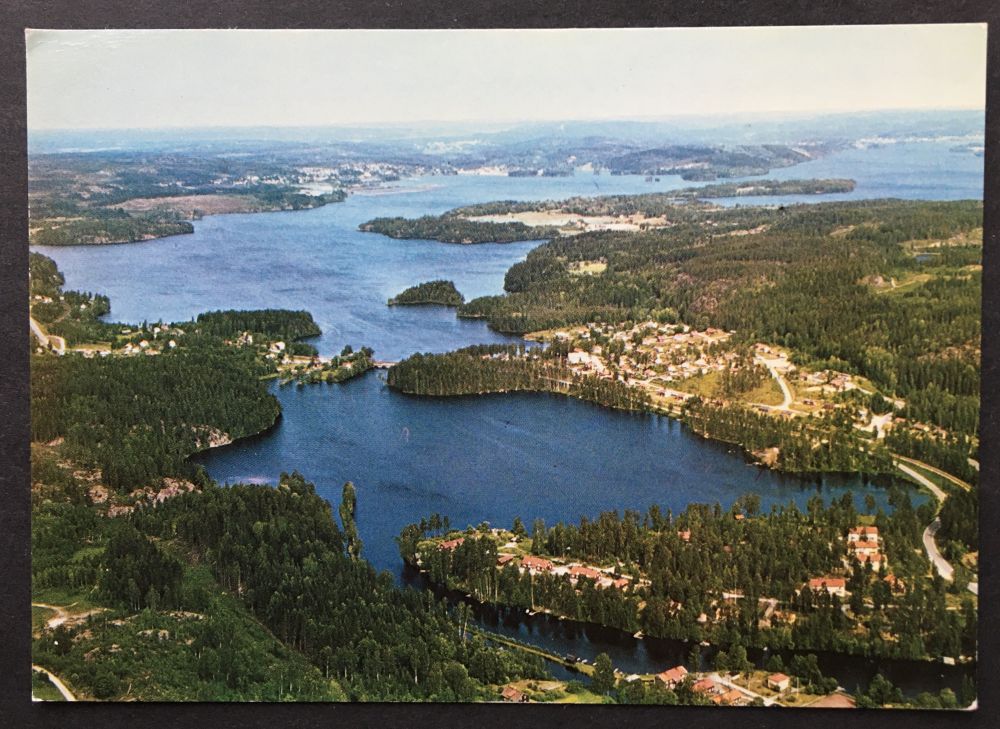 DALS LÅNGED FLYGFOTO ÖVER LAXSJÖN VID LAXBRON |
