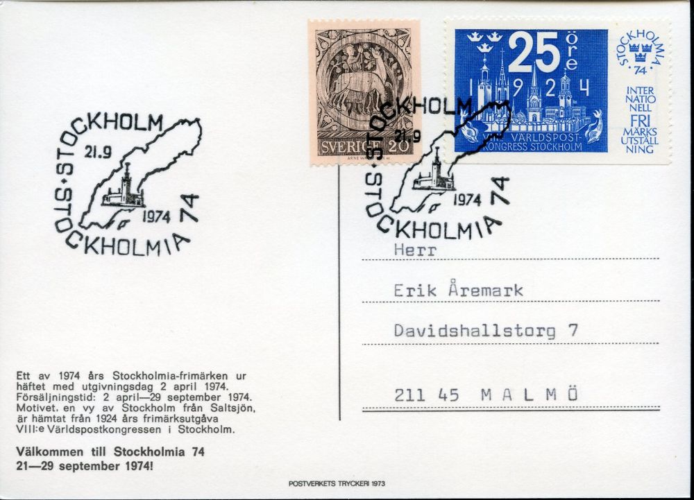 STOCKHOLM 21.09.1974. Stockholmia 74. |